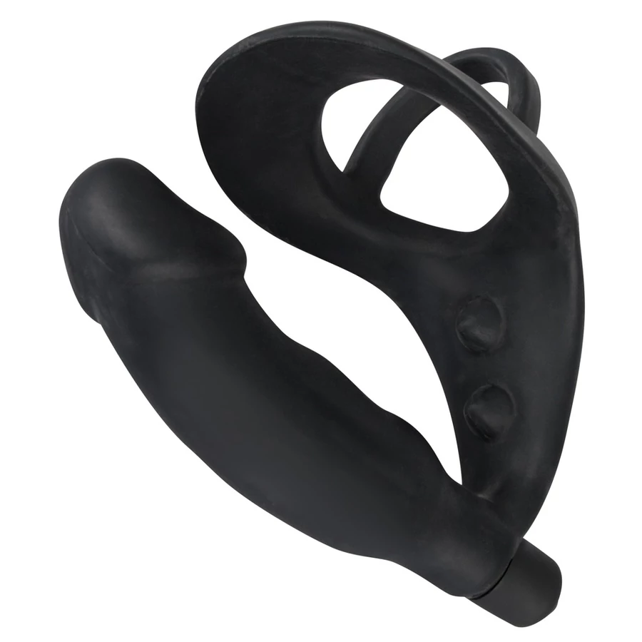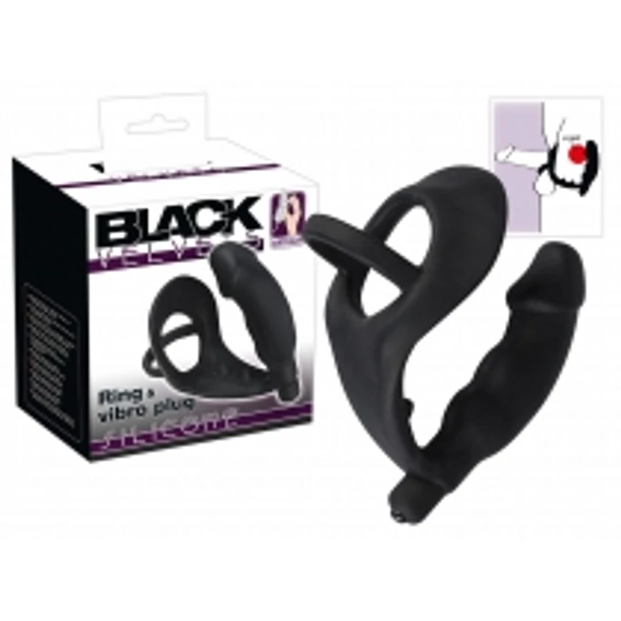 Black Velvet - péniszes análvibrátor pénisz- és heregyűrűvel (fekete)