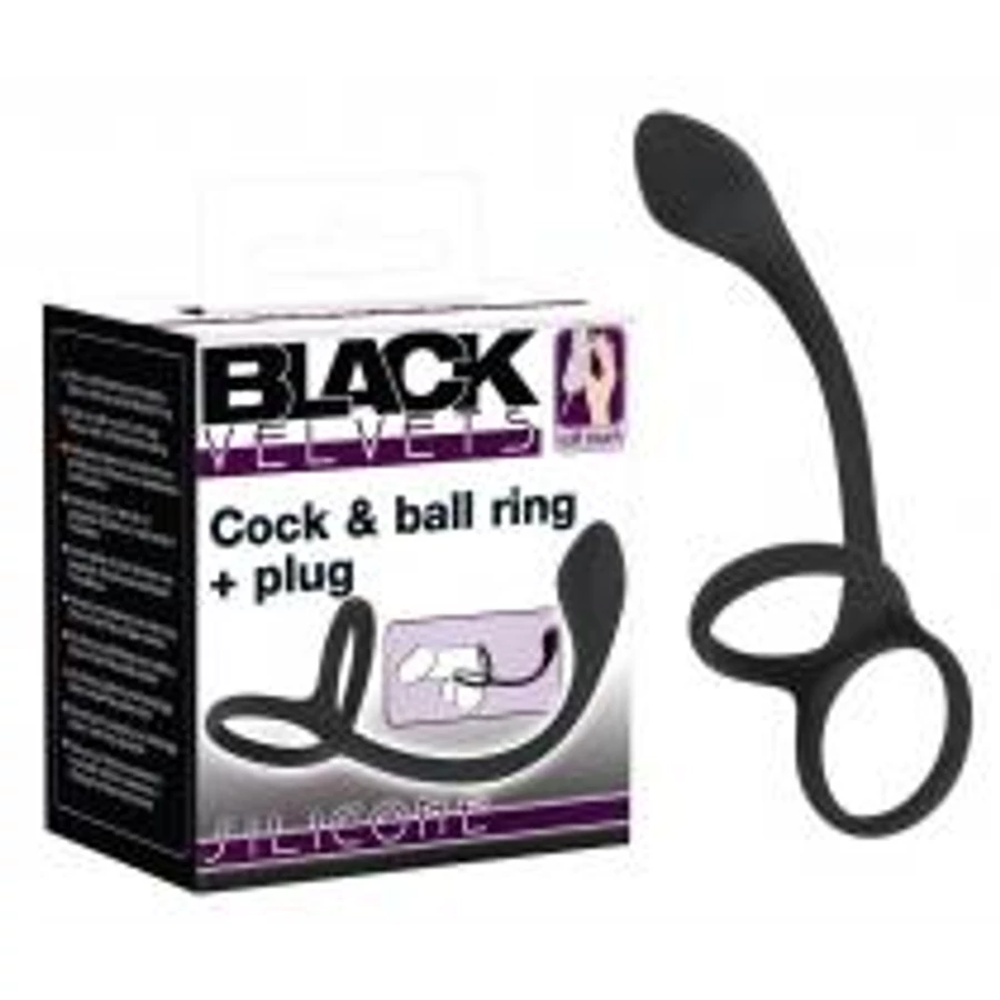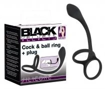 Black Velvet - vékony análdildó pénisz- és heregyűrűvel (fekete)