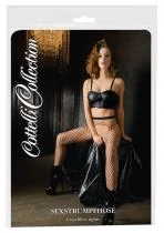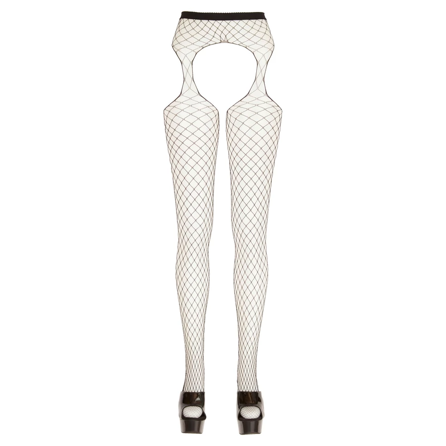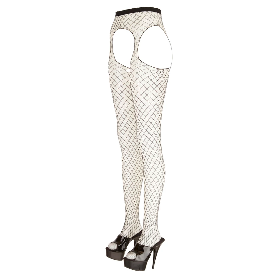 Nagyon rugalmas, nagyszemű necc anyagból készül, zárt lábfejrésszel. Elöl a szeméremnél, hátul a popsinál és kétoldalt a csípőnél is teljesen nyitott kialakítással, így aktus közben is viselhető.