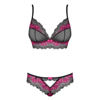 Obsessive Tulia - csipkés fehérnemű szett (fekete-pink)