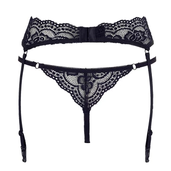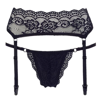 Cottelli - csipke harisnyatartó tangával (fekete)