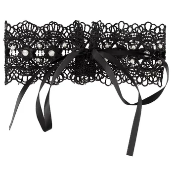 Cottelli - Gyöngyös, strasszos csipkegallér (fekete)