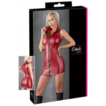 Cottelli Party - cipzáros, ujjatlan fényes miniruha (bordó)