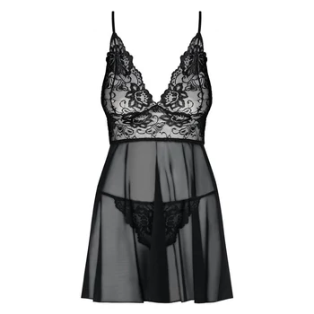 Obsessive Imperia - lenge, csipkés hálóruha tangával (fekete)