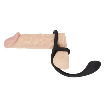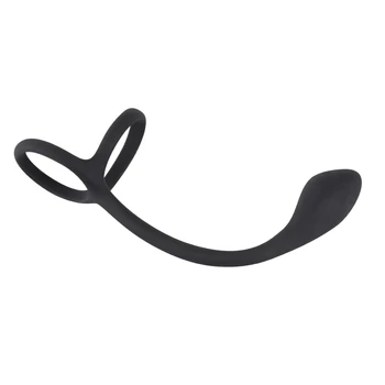 Black Velvet - vékony análdildó pénisz- és heregyűrűvel (fekete)