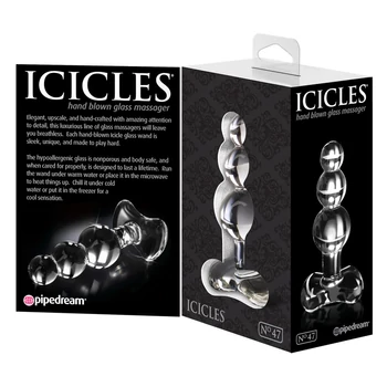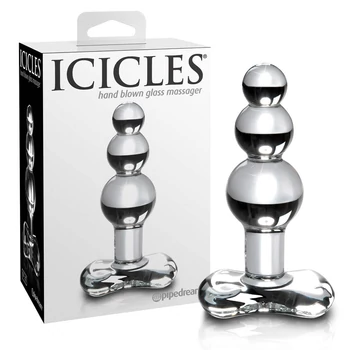 Icicles No. 47 - tripla gyöngyös, üveg anál dildó (áttetsző)