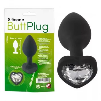 You2Toys Silicone Butt Plug - fehér köves, szíves anál dildó (fekete)