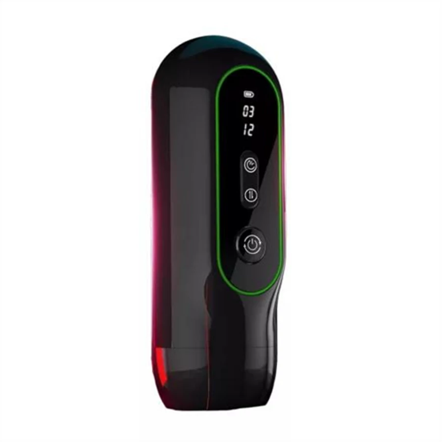 - A legalsó (power) gombot hosszan lenyomva tartva kapcsolható be és ki a kényeztető. Alaphelyzetben a kijelző számlapja felvillan és a led csík is zölden kezd világítani. További nyomogatással a rezgőmódok váltogathatók.