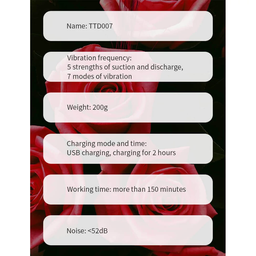 Romantikus, rózsa formájú kétfejű vibrátor, ami egyik végén virágot, másik végén pedig egy rózsabimbót formáz. Így férhet el benne egy szívókorong a csiklód kényeztetésére és egy erőteljes rezgőmotor a G-pontod izgatására.