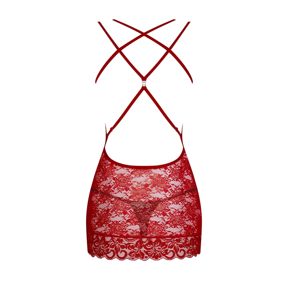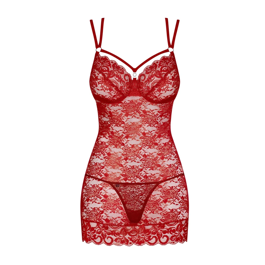 Obsessive 860-CHE-3 - pántos, rózsás csipke negligé (piros)