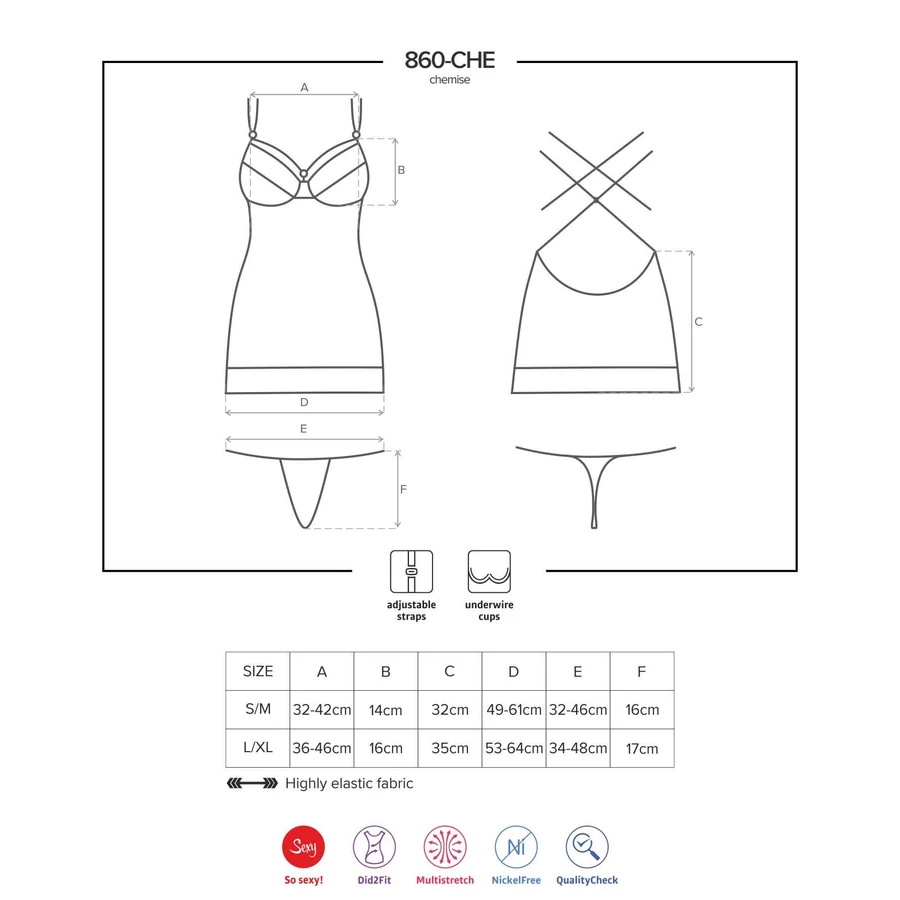 Merevített mellrésszel, melyet rugalmas pántok is keretbe foglalnak, tovább hangsúlyoznak.