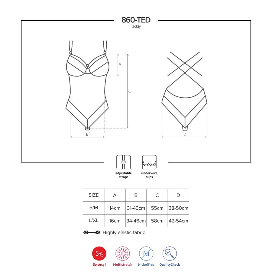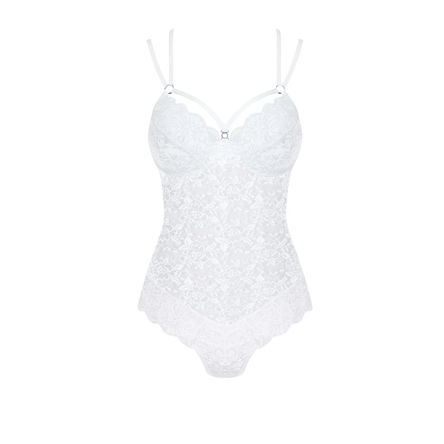 Obsessive 860-TED-2 - pántos rózsás csipke body (fehér)