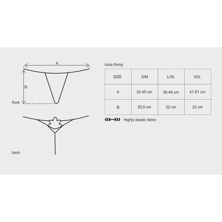 Elöl nagyon aprószemű, rugalmas necc anyagú tanga, a szeméremnél kényelmes, puha anyagbetéttel, hátul exkluzív, aprólékosan kidolgozott, hímzett tulipán motívummal.