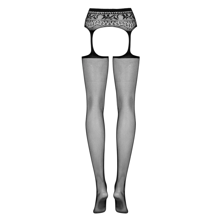 Obsessive S307 - virágos-lyukacsos necc harisnyatartós szett (fekete)