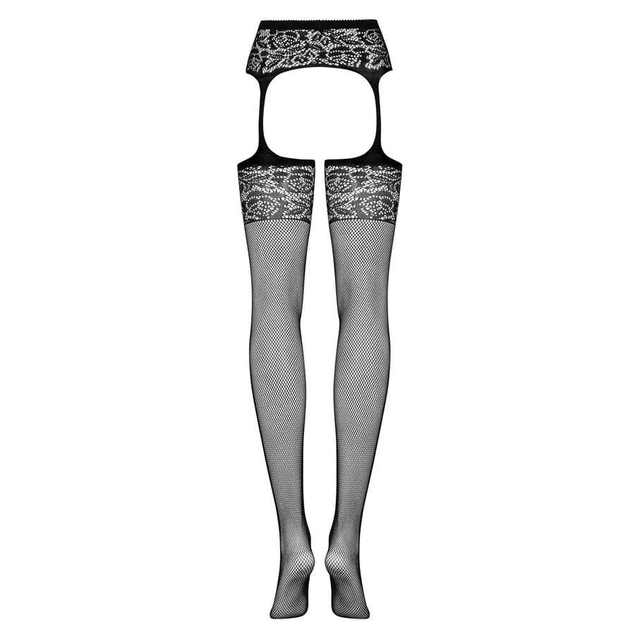 Obsessive S500 - virágmintás necc harisnyatartós szett (fekete)