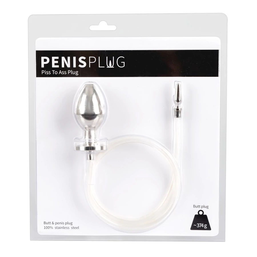 Piss to Ass Plug - üreges acél anál dildó húgycsőtágítóval
