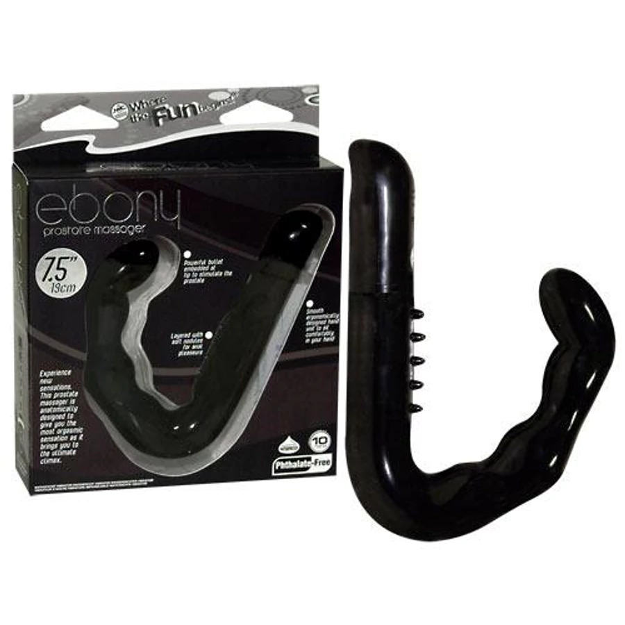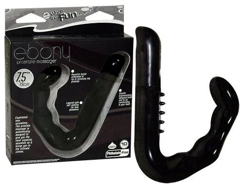 10 vibrációs ritmusú, íves prosztataizgató. A hajlított rész 13,5cm hosszú, átmérője 1,5-2,5cm. Rugalmas anyagból. Fekete színben. A termék 2db N-típusú elemmel (2xLR1) működik, amit a csomag tartalmaz.