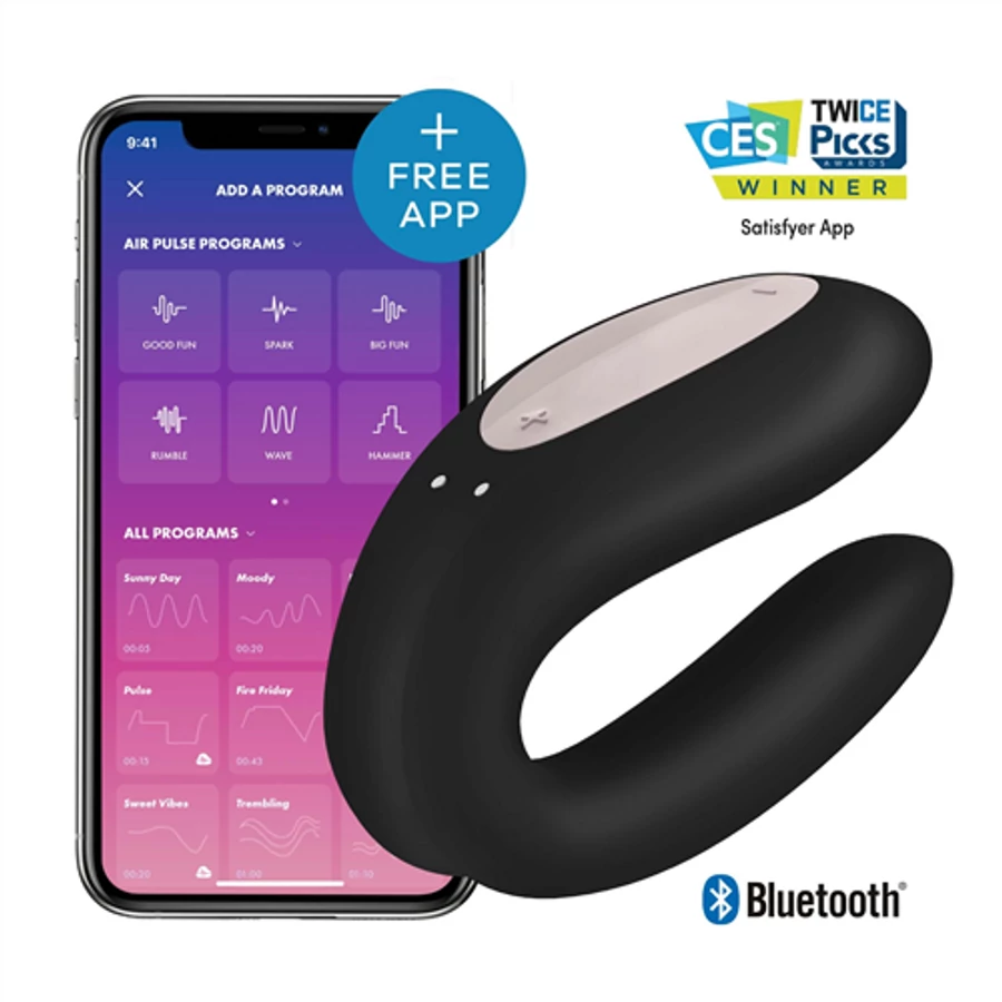 Satisfyer Double Joy - okos, akkus, vízálló párvibrátor (fekete)