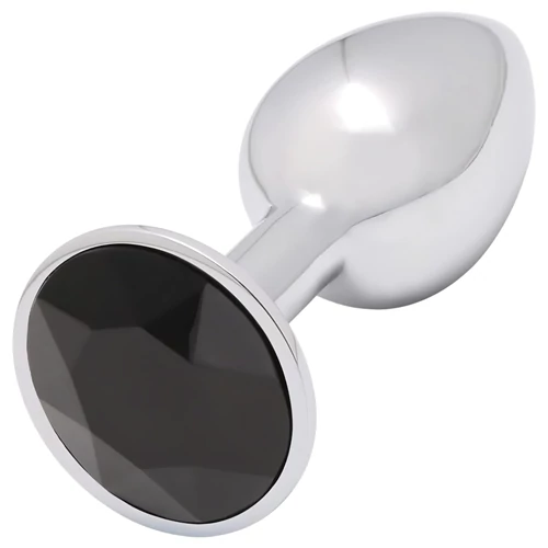 Sunfo - fém anál plug fekete kővel (ezüst)