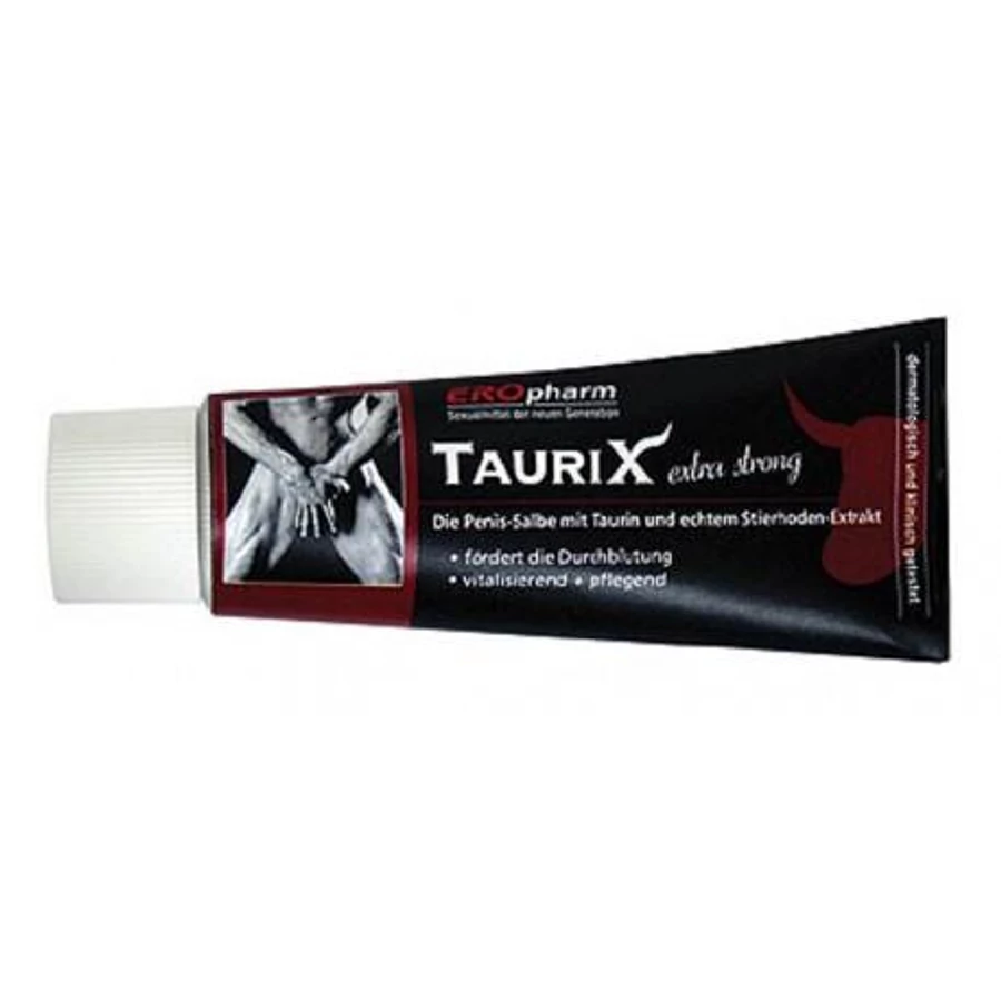 Bőrgyógyászatilag és klinikailag tesztelt, erekciósegítő péniszkenőcs, serkentő taurinnal és valódi bikahere-kivonattal. A Taurix-krém intenzíven hozzájárulhat a vérbőség fokozásához a péniszben (és herékben), miközben gyengéden ápolja a bőrt. 40ml-es tubusban.