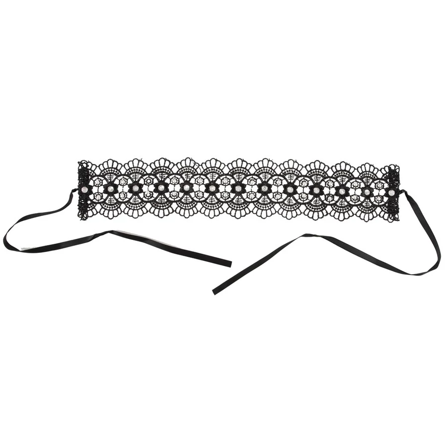 Cottelli - Gyöngyös, strasszos csipkegallér (fekete)